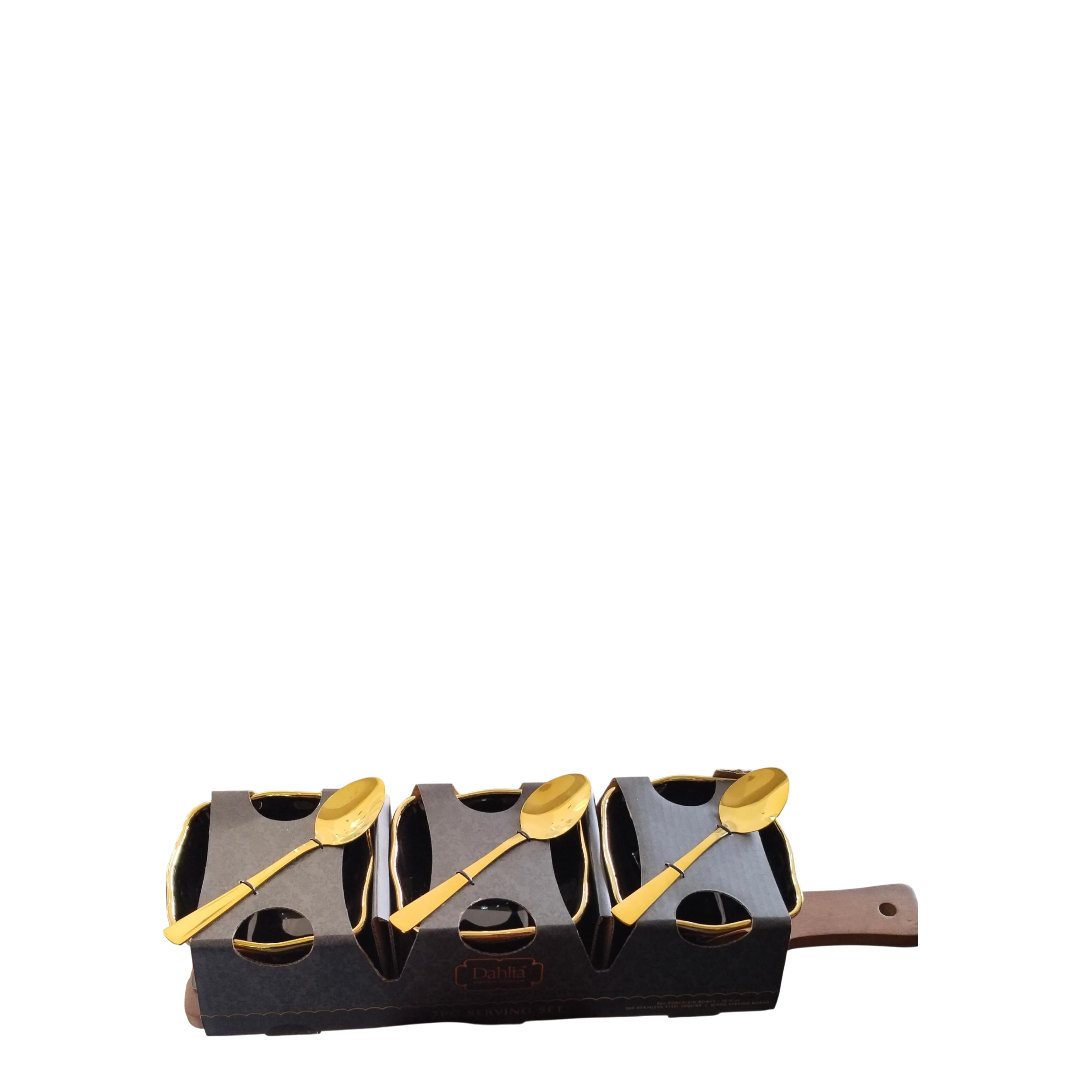 The set includes multiple serving bowls paired with matching gold-tone spoons, making it perfect for presenting snacks, desserts, sauces, or side dishes. The coordinated design ensures a clean, sophisticated look whether you're entertaining guests or enjoying everyday meals.